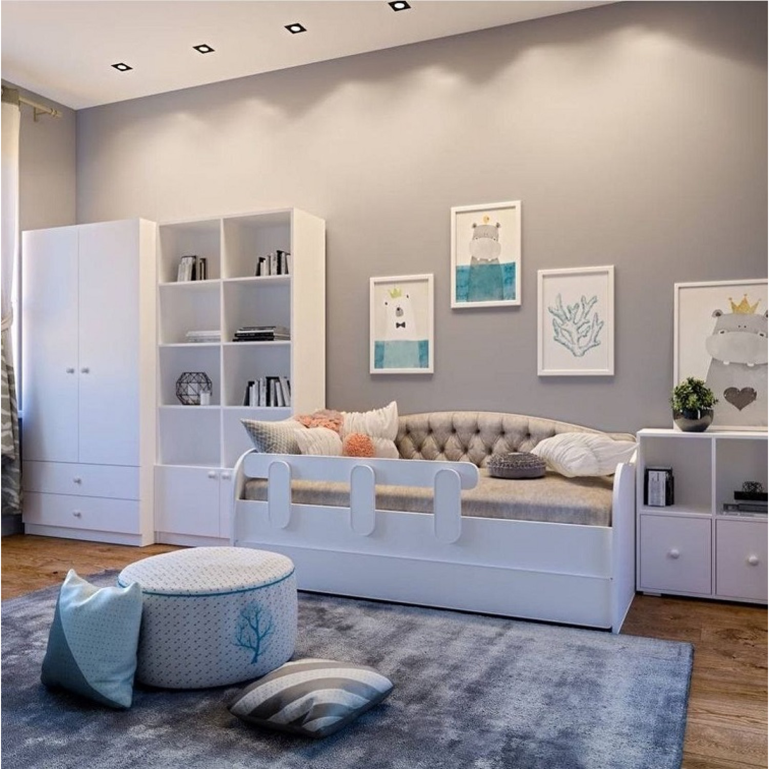 Стильная классическая тахта "Ника" для детской. Универсальный дизайн позволяет ей гармонично вписаться в любой интерьер. Кровать оснащена вместительным ящиком на шариковых направляющих для хранения игрушек, одежды или постельного белья. Основание из ортопедических ламелей обеспечивает здоровый сон и поддерживает правильное развитие позвоночника ребенка. Съемный защитный бортик предотвращает падение. Модель изготовлена из высококачественных материалов, что гарантирует долгий срок службы и надёжность.